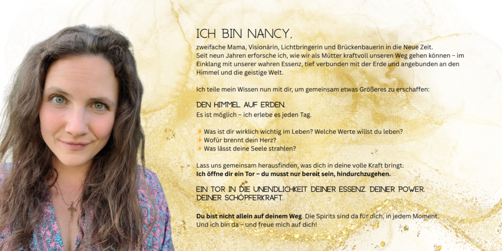 Schreib mir eine E-Mail, ob du gerne heilvolle Frequenzen aus der geistigen Welt (Healing) oder konkrete Informationen(Channeling) empfangen möchtest und wir finden zusammen einen Termin. Ich freue mich so sehr darauf, dich bei deinem Erblühen unterstützen zu dürfen! Nancy